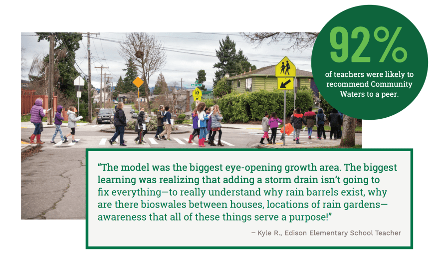 The Community Waters Science Unit is designed for 4th grade students. It incorporates Next Generation Science Standards* and the Ambitious Science Teaching framework. IslandWood initially partnered with Seattle Schools on the development and implementation of the unit with the support of many generous funders.